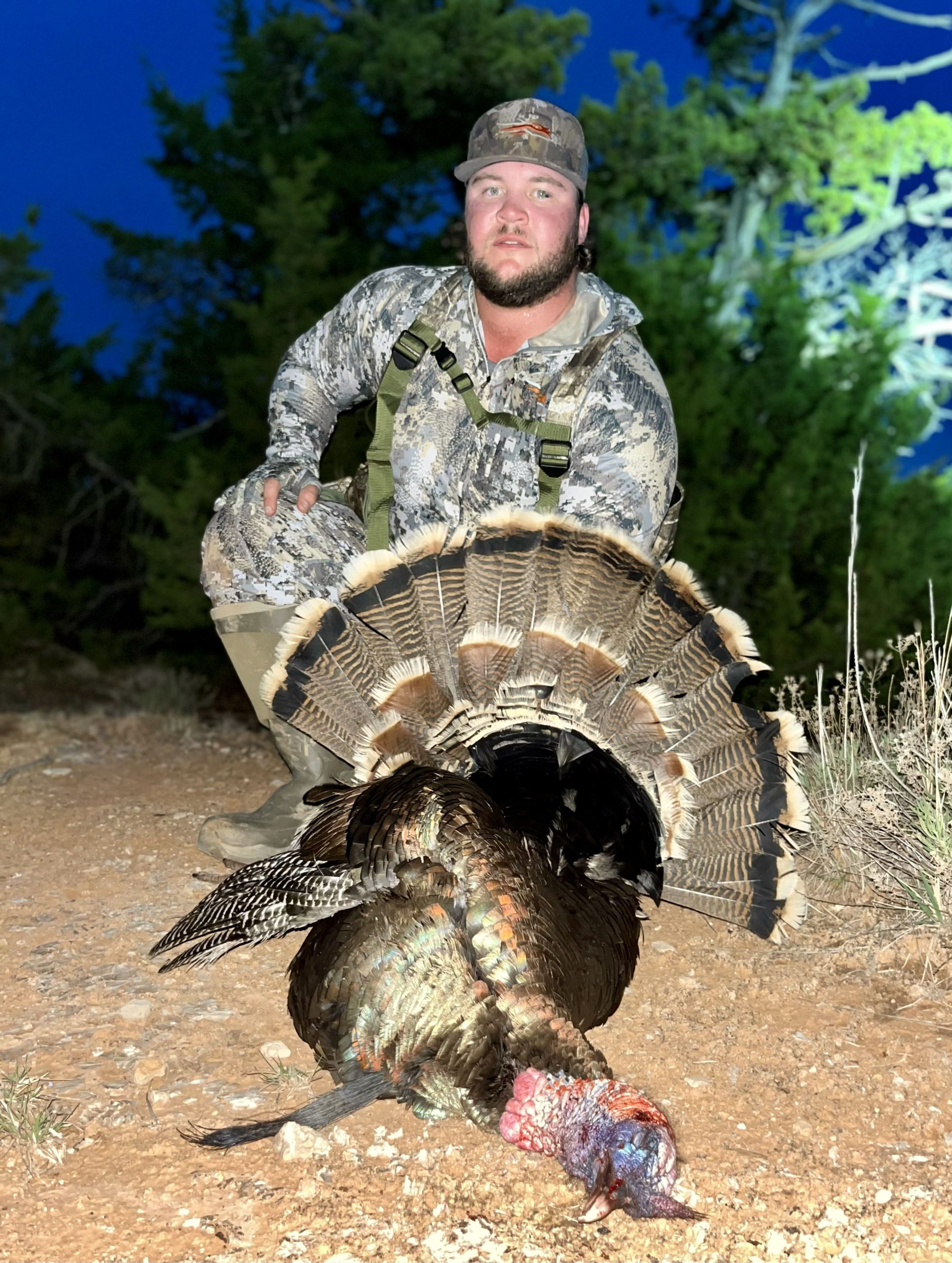 Our program is fully guided at a 1-on-2 ratio, with a maximum of just four hunters in camp at any time, ensuring personalized attention and an unhurried hunting experience. We consistently deliver a 100% shot opportunity, hunting a diverse mix of red canyon country and hardwood agricultural ground that allows us to adapt daily to bird movement and conditions. Hunters will utilize both ground blinds and spot-and-stalk tactics, providing a dynamic and engaging hunt style.